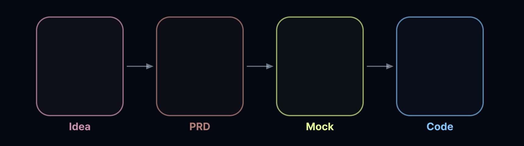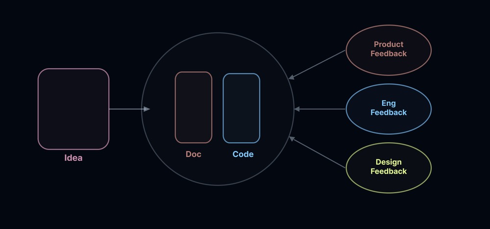 想法 → 文档 → 代码 → [产品反馈 / 工程反馈 / 设计反馈]